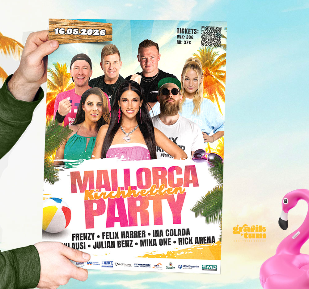 Vereinsfeier, Festival, Firmenfeier: Ich gestalte Plakate, Tickets, Textilien, Banner und Flyer für Deine Veranstaltung. Perfekt aufeinander abgestimmt, mit Wow-Effekt, das viele Besucher anziehen wird.